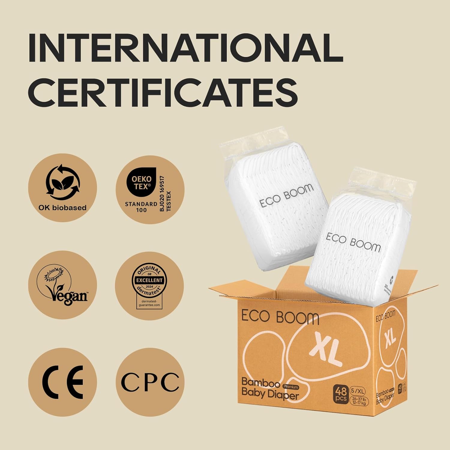 Each ECO BOOM Diaper is dermatologically tested and proven to be gentle on your baby’s skin. With no harmful chemicals or fluorescent agents, these diapers are the ultimate choice for sensitive skin. We prioritize your baby's well-being with every diaper we make.