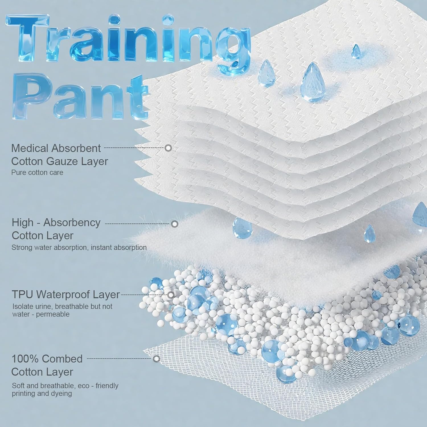 Featuring a 6-layer absorbent core, these training pants ensure maximum absorbency, effectively wicking away moisture and preventing leaks. Parents can trust these pants to keep their toddlers dry during daytime potty training.